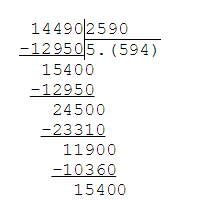 как поделить в столбик 14490/2590 ПОМАГИТЕ СРОЧНО НУЖНА ПОЖАЛУЙСТА