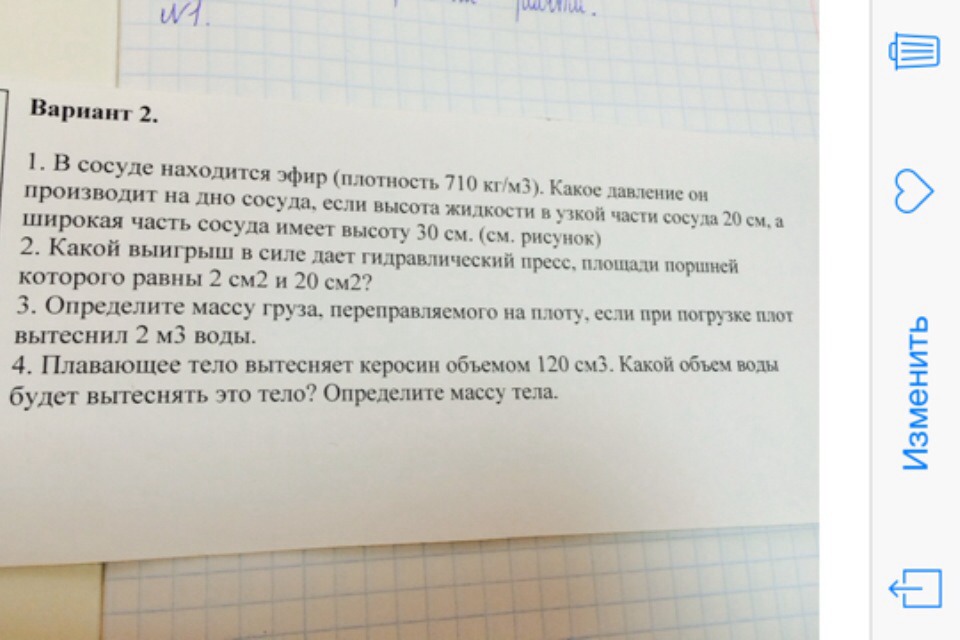 4. Вес вытесненного керосина Р=ро*g*V=800*9,8*0,00012=0,9408H, а масса