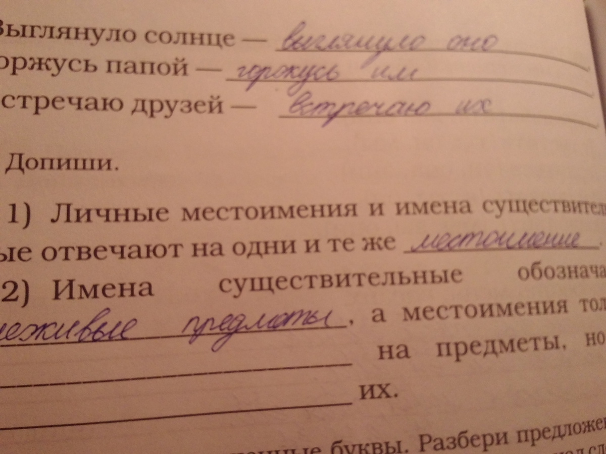 2) Имена существительные обозначают предметы, а местоимения только указывают предметы, но не называют их.