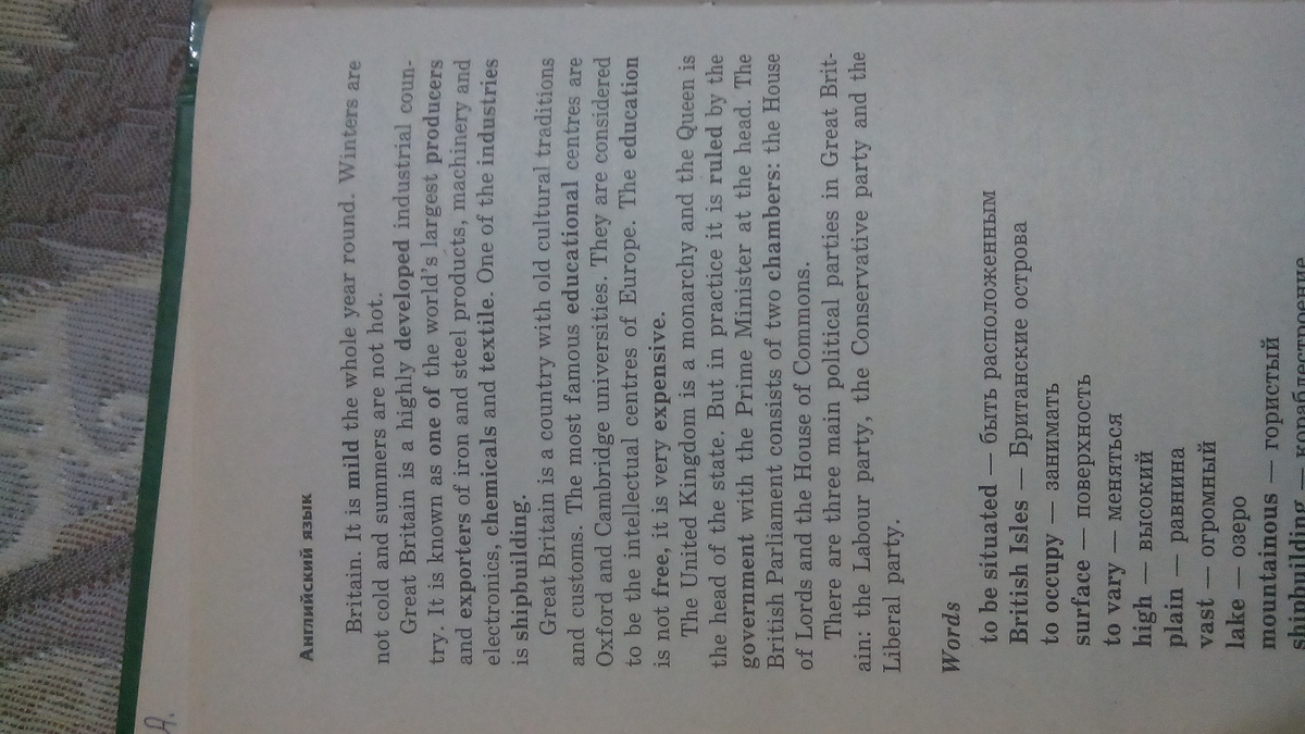 Поверхность (рельеф) Великобритании сильно вальируется. Северная и западная части страны покрыты горами, которые называются - Хайлендс.Все остальное обширная равнина - Лоулендс. Горы не очень высокие. Реки не очень длинные. Самые важные из них - Северн и Темза. Есть много красивых озер в горной части страны...