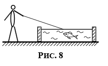 в котором плавают рыбы (см. рис.8). Хулиган, праздно шатающийся по коридорам торгового центра, достал из кармана лазерную указку высокой мощности и попытался осветить лазерным лучом рыб. Как хулиган, должен целиться, чтобы попасть лазерным лучом в рыбу