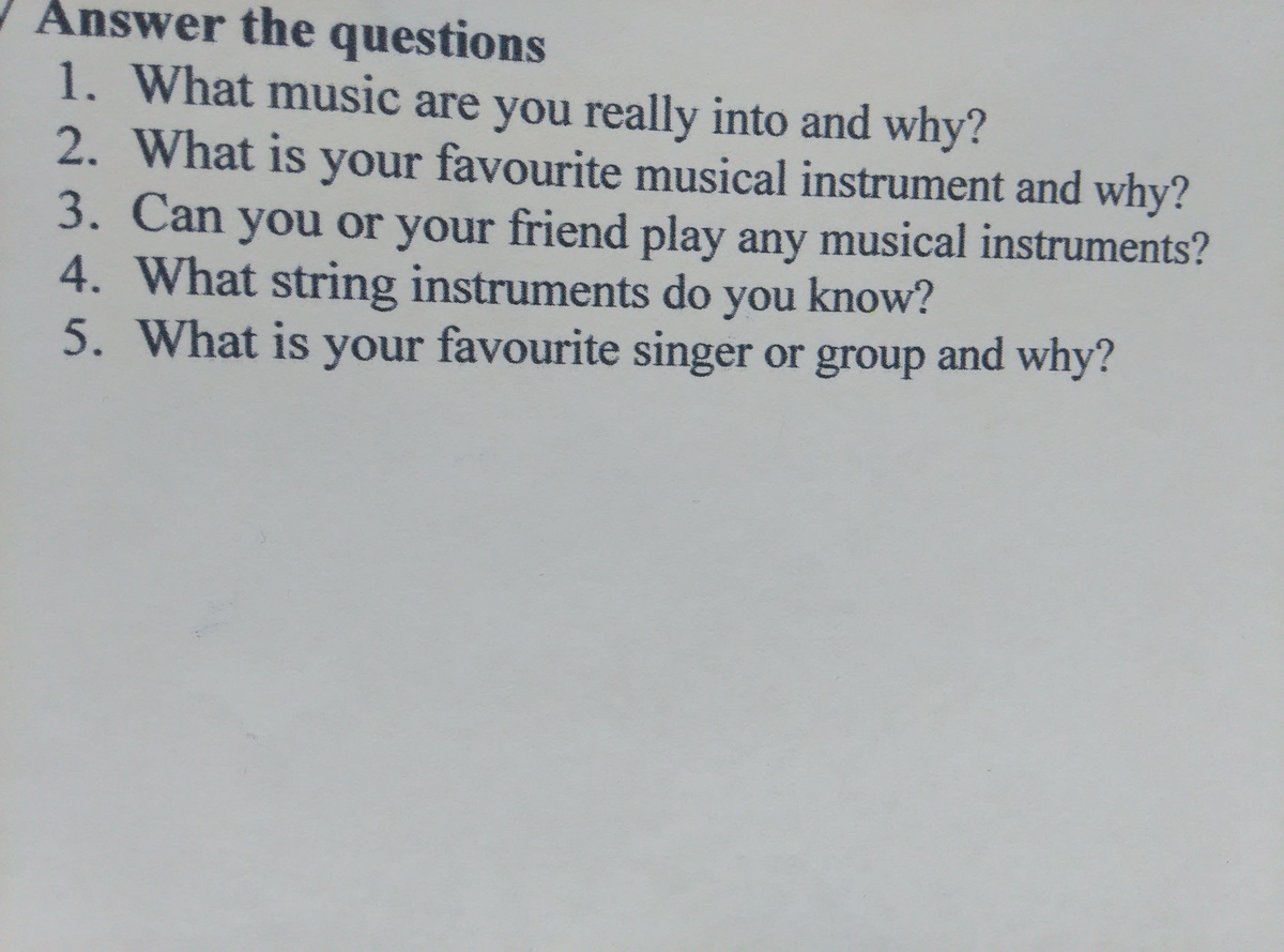 В Первом вопросе спрашивается какой жанр музыки тебе нравится и почему.