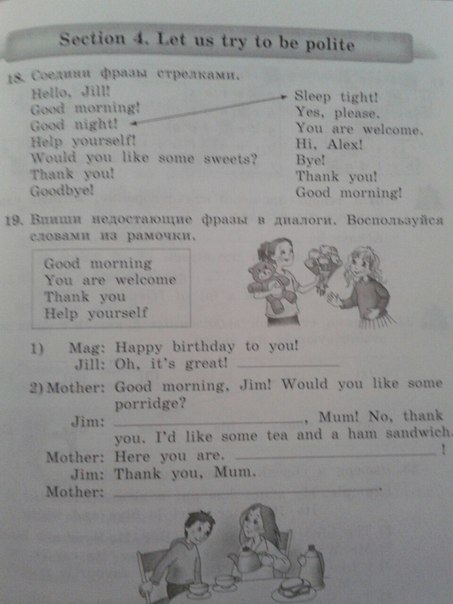 2) Good morning; Help yourself; You are welcome
