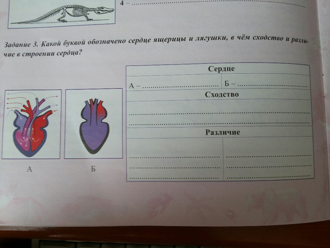 какой буквой обозначено сердце ящерицы и лягушки, в чём сходство и различие в строение сердца?