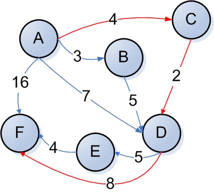 Определите длину кратчайшего пути между A и F (При условии, что передвигаться можно только по посторонним дорогам).