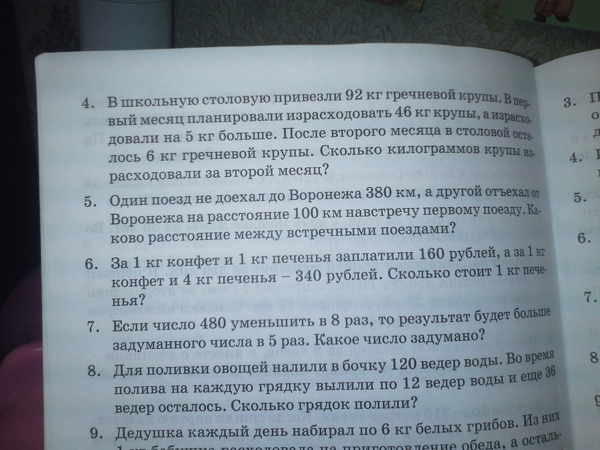 один поезд не доехал до воронежа 380км а другой отъехал от воронежа на расстояние 100км на встречу 1 поезду.Каково расстояние между встречными поездами? И ещё 4