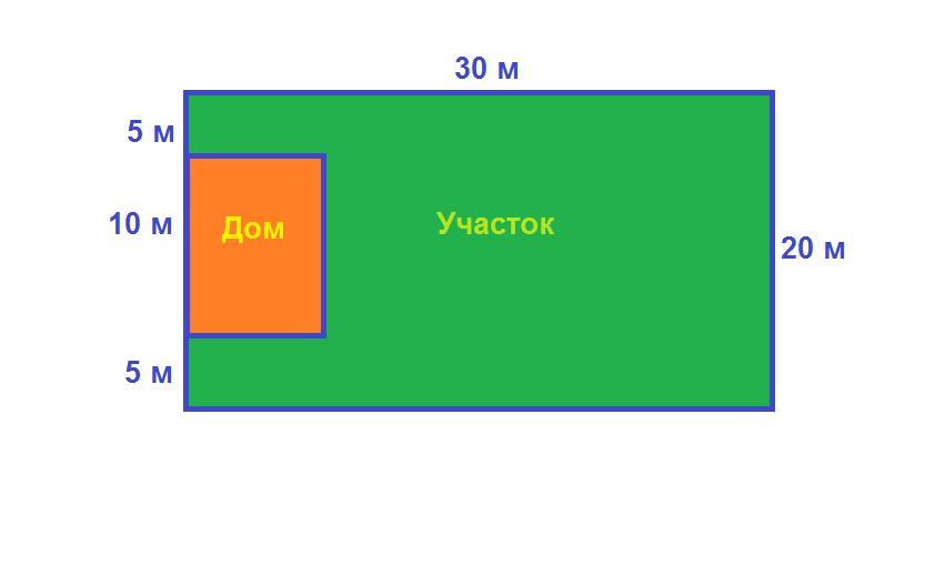 Участок - прямоугольник: длина=30 м; ширина=20 м