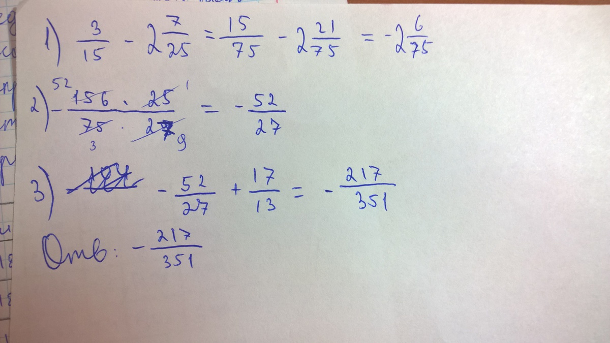 (3/15-2 целых 7/15):1 целую 2/25+ 1 целая 4/13= (По действиям)