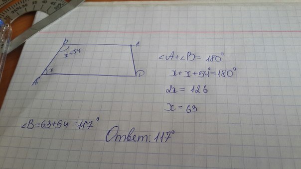сумма боковых углов трапеции равна 180