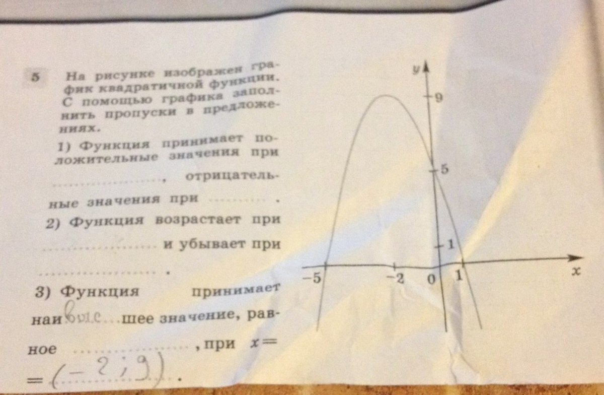 3) Функция принимает наиБОЛЬшее значение, равное 9, при х = -2