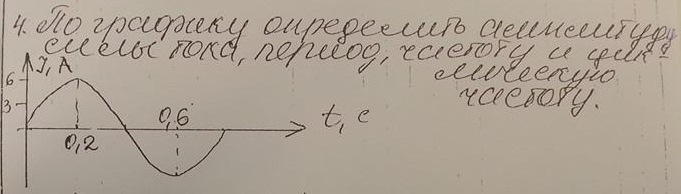 По данному графику какая будет амплитуда силы тока, период, частота и циклическая частота?