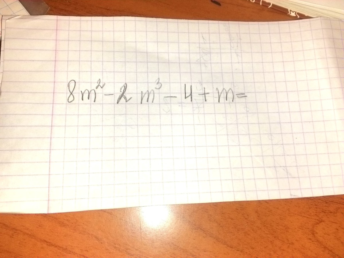 8m^2-2m^3-4+m= 2m^2(4-m) - (4-m) =(2m^2)*(4-m)