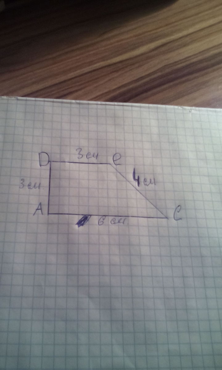S трапеции ADEC = 1/2*(3+6)*3 = 4,5*3 = 13,5 (см²)