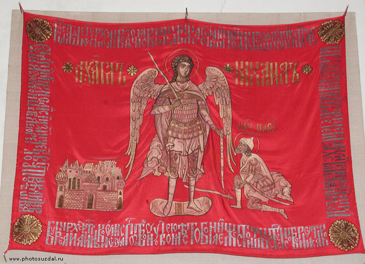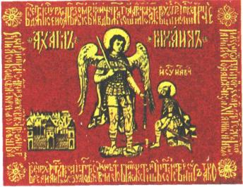 Какого цвета было воеводское знамя князя Д. М. Пожарского при изгнании польских интервентов? Что было изображено на этом знамени?