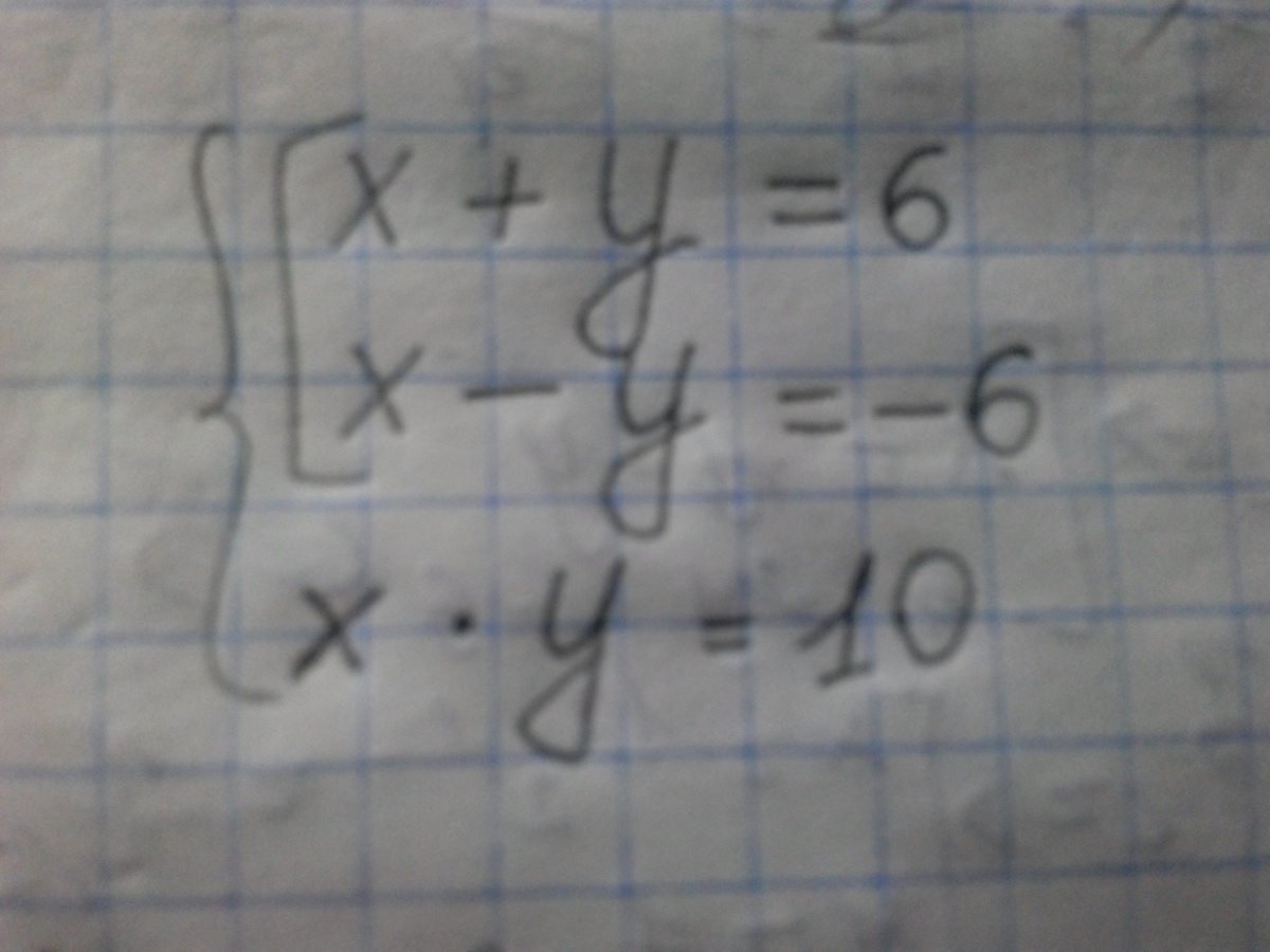 Если это система из трех уравнений, то она не имеет решения. Ибо первые два уравнения дают х=0, у=6. Их произведение дает 0.