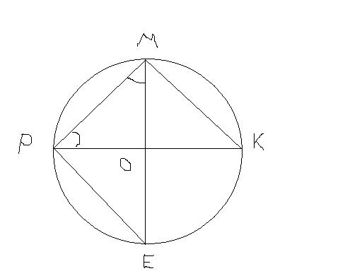 ΔMOP - равнобедренный, т.к MO=OP=R => <EMP=<MPK