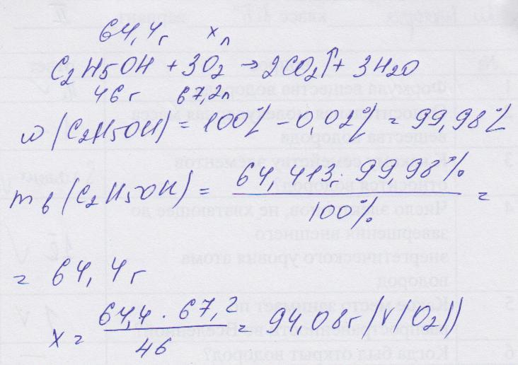 определите обьём кислорода, затраченного на сжигание этанола массой 64,413 г., содержащего 0,02% негорючих примесей.