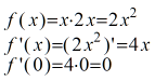 тут нету квадрата где нибудь, просто производна этого уравнения равна 2, а эф штрих от нуля не найдем
