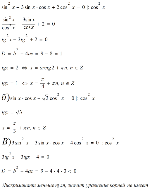 а)sin^2x - 3 sin x cos x + 2 cos ^ 2x = 0