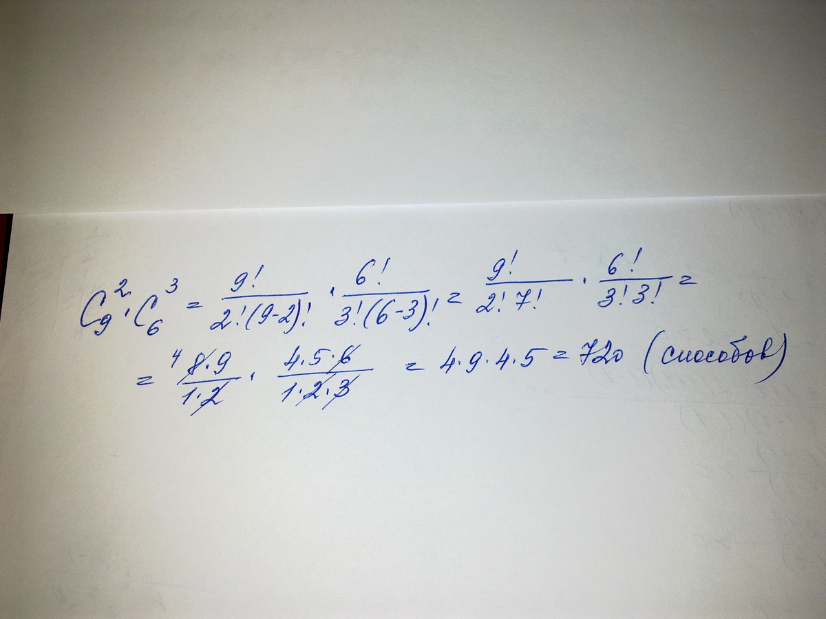 Из 9 ручек и 6 карандашей надо выбрать 2 ручки и 3 карандаша. Сколькими способами можно сделать этот выбор?