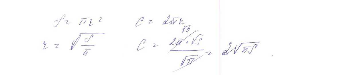 из формул площади круга s=пr^2 и длины окружности C=2пr выразите длину окружности С через площадь круга S