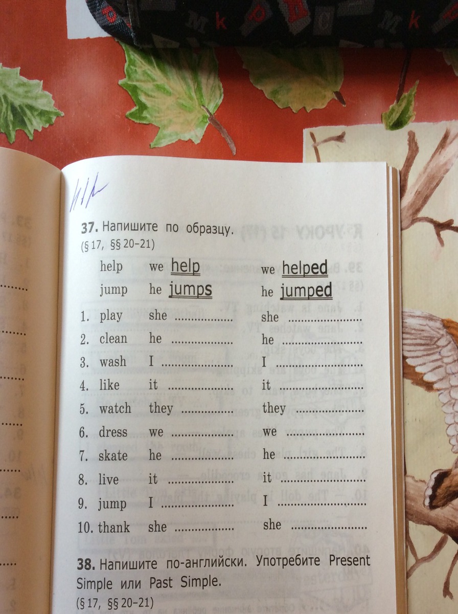В первом столбце( в примере) если HE SHE ИЛИ IT ТО СТАВИТСЯ s ,если we i you и т.д. то s не пишется.