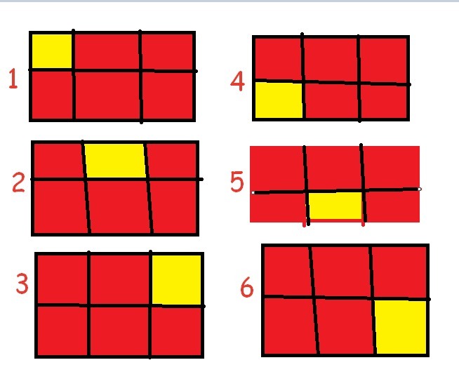сколькими способами можно построить фигуру из 6 квадратов 5 из которых красные а 1 желтый и нарисовать их