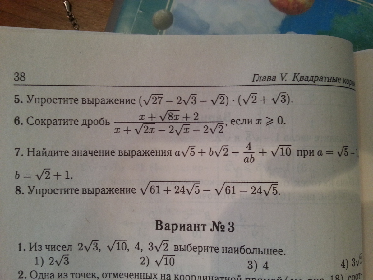 5. (3sqrt(3)-2sqrt(3)-sqrt(2))(sqrt(2)+sqrt(3)=(sqrt3-sqrt2)(sqrt2+sqrt3)=3+2=5