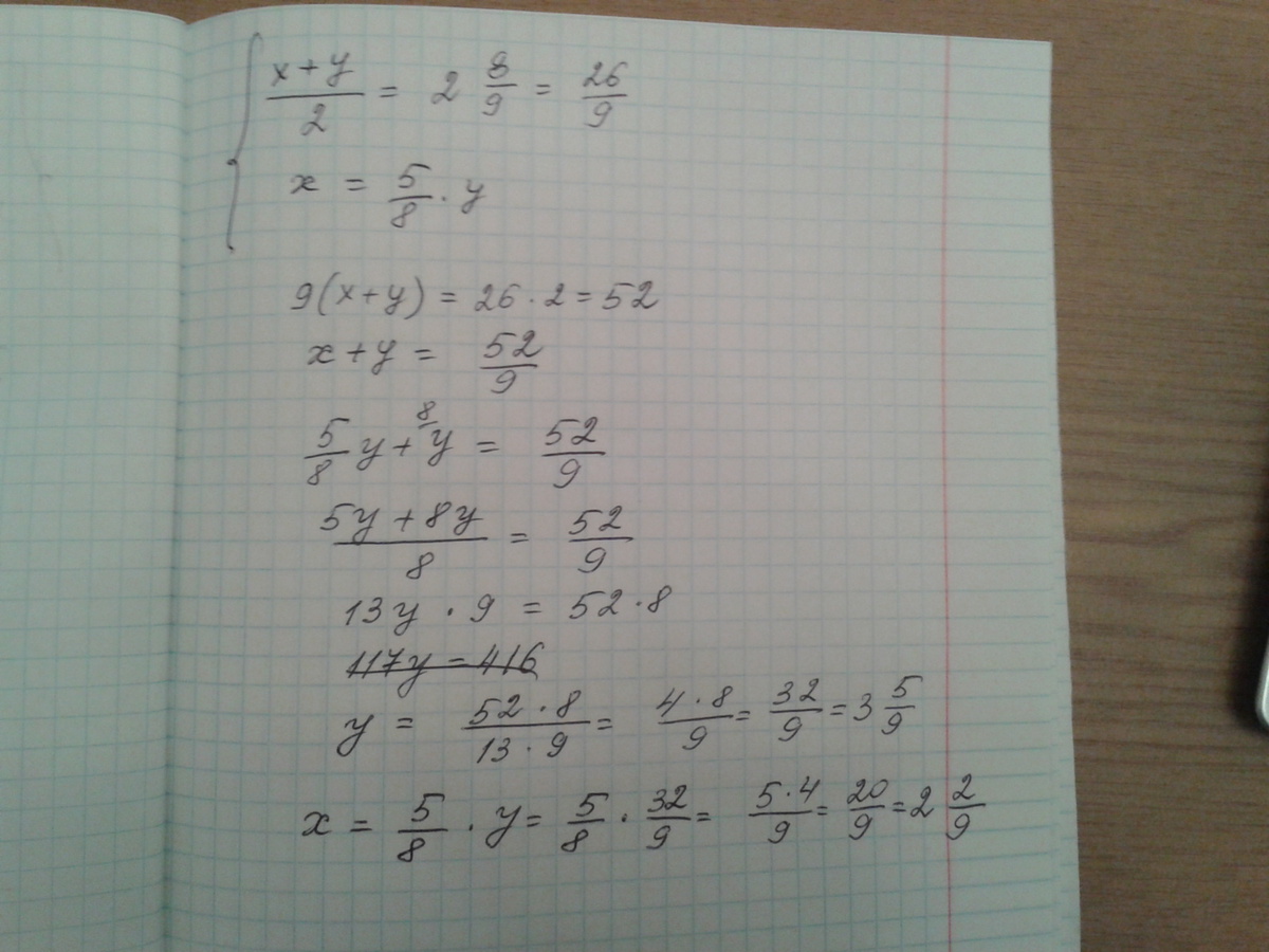 равно - 2 целых 8/9. Первое число составляет 5/8 от второго числа Найдите эти числа.