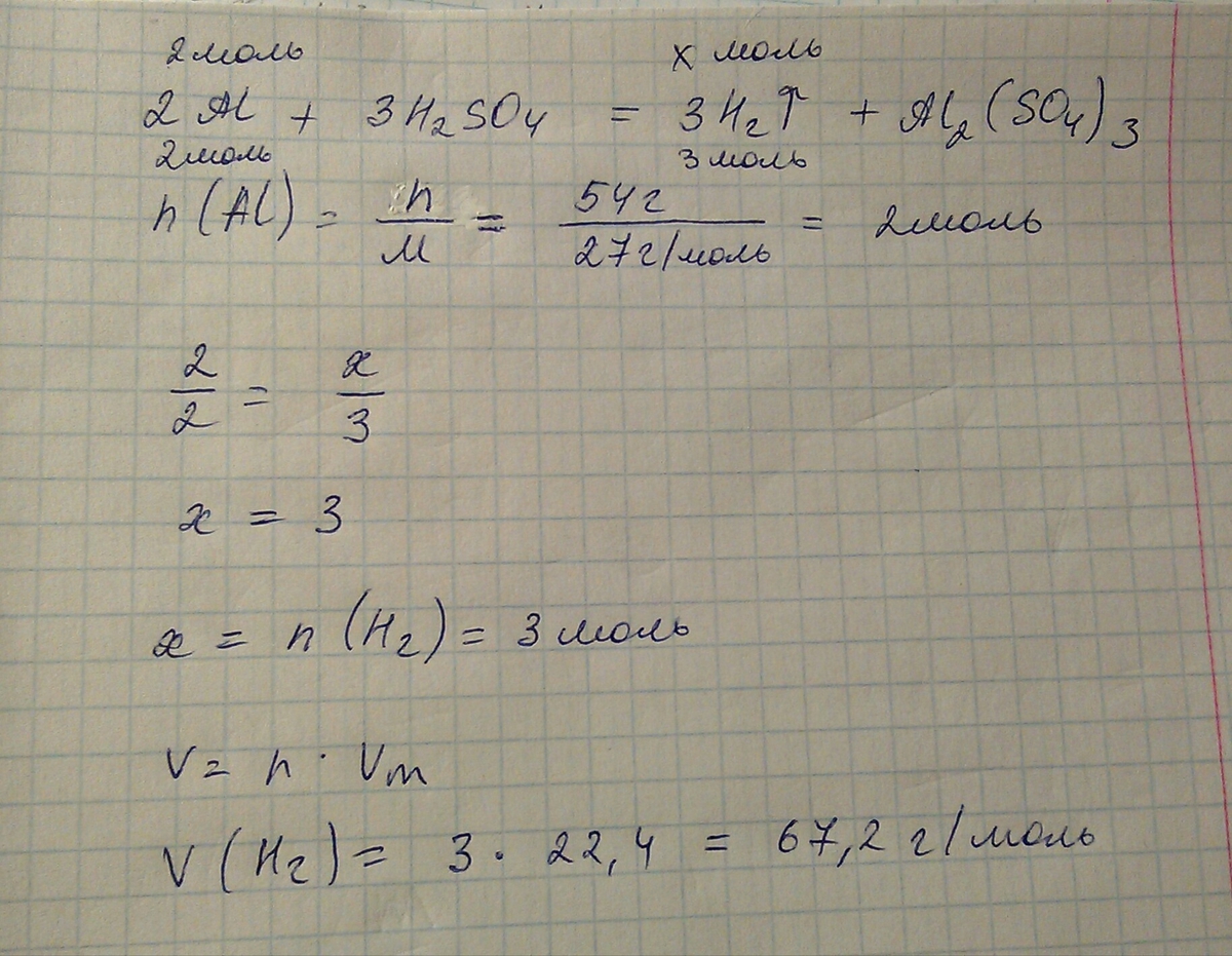 ЗАДАЧА : РАССЧИТАЙТЕ ОБЪЁМ ВОДОРОДА ПОЛУЧЕННОГО ПРИ ВЗАИМОДЕЙСТВИИ 54 Г АЛЮМИНИЯ С СЕРНОЙ КИСЛОТОЙ .