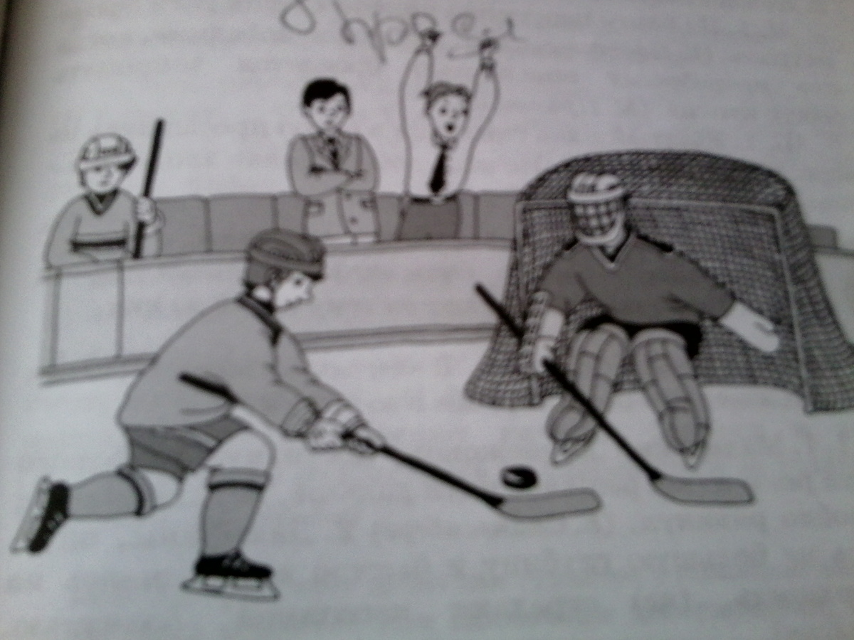 Мальчишки играют в хоккей.Сенька, сидя на скамейке запасных, ожидает своего выхода на поле.Максим и Ваня сегодня выступают в роли зрителей.Максим наблюдает за игрой, скрестив на груди руки-ему не нравится сегодняшний ход игры.А Ванька, наоборот, подняв вверх руки, активно болеет за товарищей.Вовка в сегодняшнем матче стоит на воротах, пытаясь не пропустить ни одной шайбы.Но с таким соперником выстоять тяжело-нападающий соперников известный в своем районе хоккеист Саша, он профессионал.И занимается хоккем уже давно.