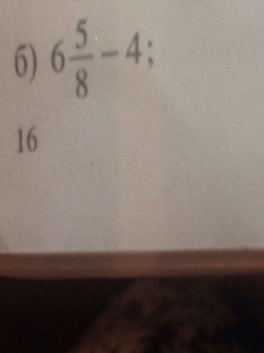 6 5/8-4= 53/8-4/1=53/8-32/8=21/8=2 5/8