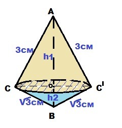 Прямоугольный треугольник с катетами 3 см. и √3 см., вращается вокруг оси, содержащей его гипотенузу. Найти объем фигуры вращения.