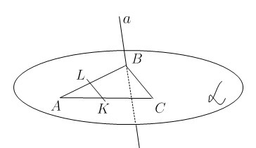 . Согласно аксиомы 2: если две точки прямой лежат в плоскости, то все точки данной прямой лежат в этой плоскости. Следовательно, прямая LK лежит на плоскости