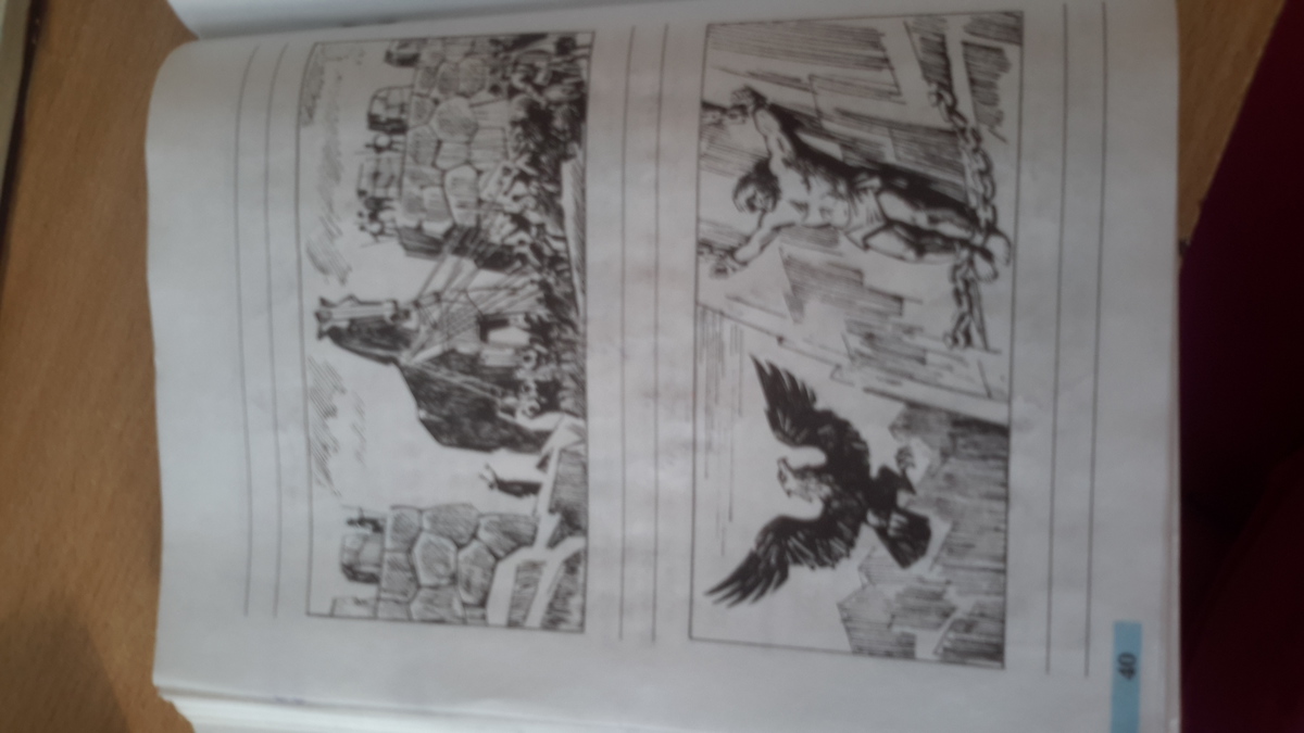 3)Миф о Прометее.Прометей принес людям с Олимпа огонь.За это Зевс наказал его и приказал слугам приковать Прометея к скале,а орел каждый день должен был прилетать и клевать печень Прометея.За ночь раны заживали,и все продолжалось снова.