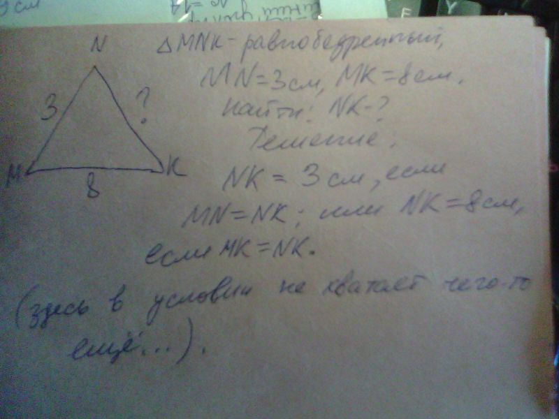 3+3 меньше третьей стороны 8 см. Остаётся 8 см.