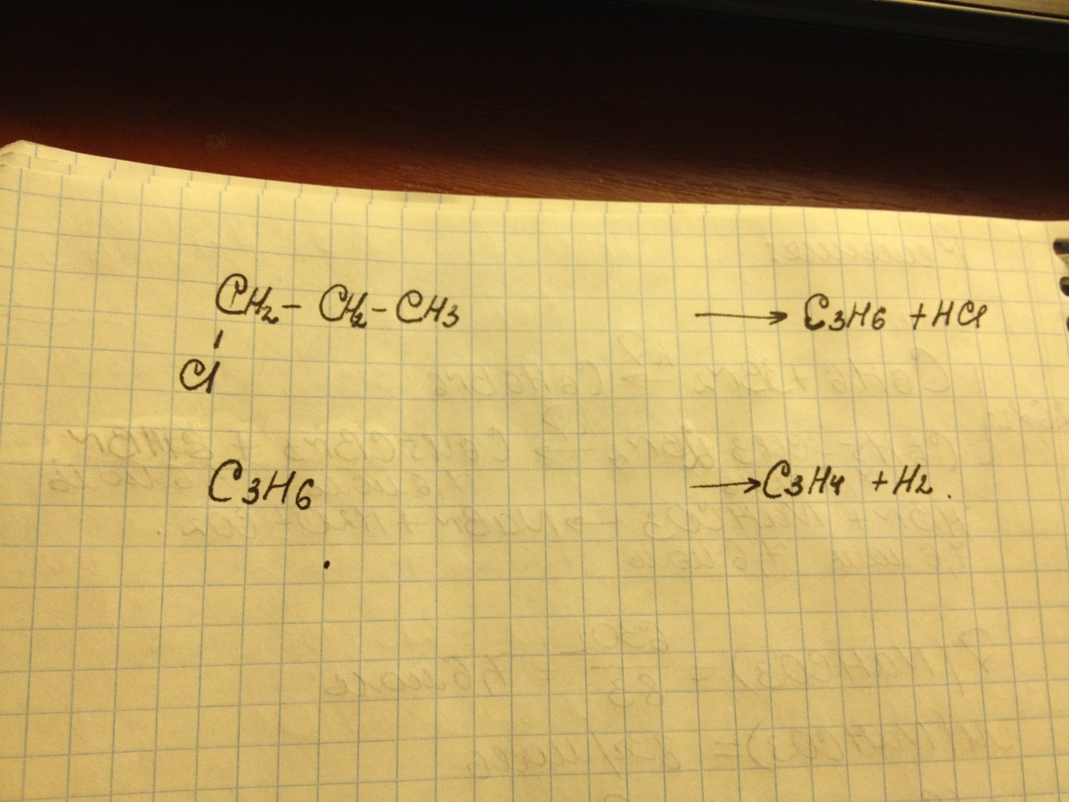 1-хлорпропан CH2-CH2-CH3+KOH(СПИРТ РАСТВОР)~CH2=CH-CH3+KCL