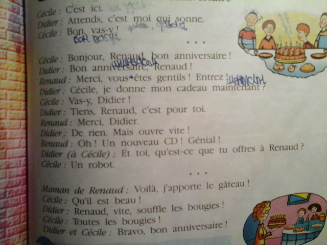 С д/р Рено! Спасибо, вы милые. Заходите! Сесьель я подарю подарок сейчас? Давай, дидьер. Тогда это для тебя Рено! Спасибо дидьер! Не за что открывай быстрей! Ах! Новый CD! Класс! А ты что будешь дарить ему? Робота