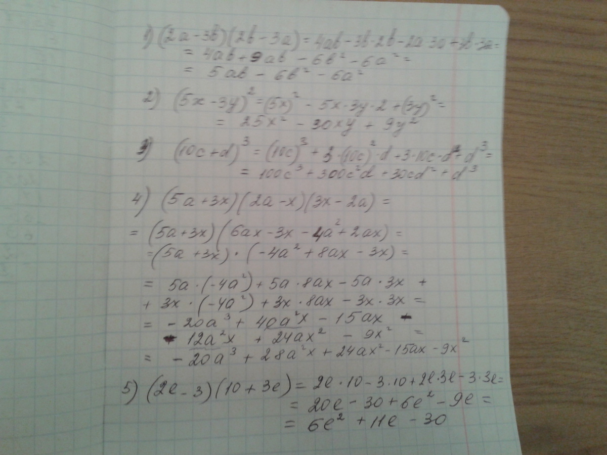 Образец:(a+b)^2=(a+b)(a+b)=a^2+ab+ab+b^2=a^2+2ab+b^2