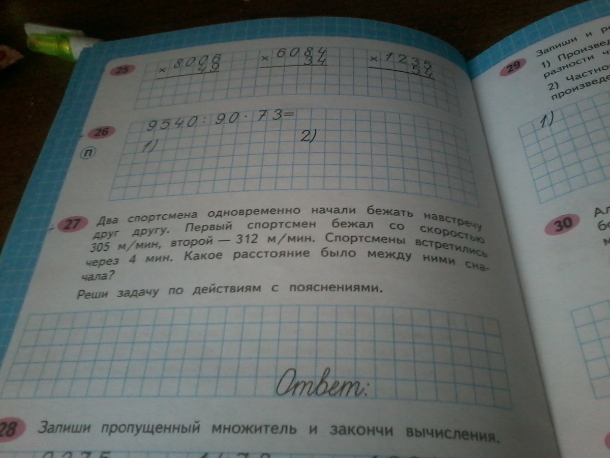 305+312=617м/мин скорость сближения спортсменов 617*4=2468м или 2км468 м расстояние было между спортсменами сначала ( 1км=1000м)