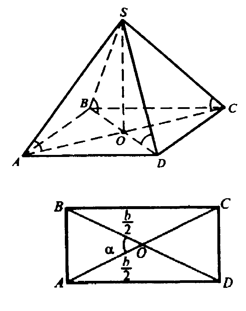 Тогда OА=OВ=OС=OD и высота проектируется в точку пересечения диагоналей прямоугольника ABCD.