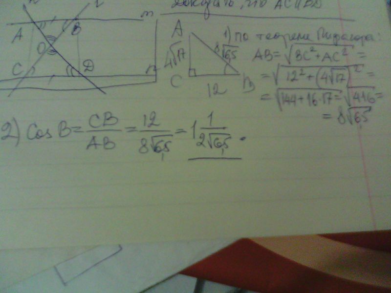 BC = 12 , AC = 4 корня из 17. Найдите cosB.
