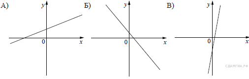 На рисунке изображены графики функций вида y = kx + b. Установите соответствие между знаками коэффициентов k и b и графиками функций.