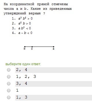 На координатной прямой отмечены числа a и b. Какие из приведенных утверждений верные? (фото 1)