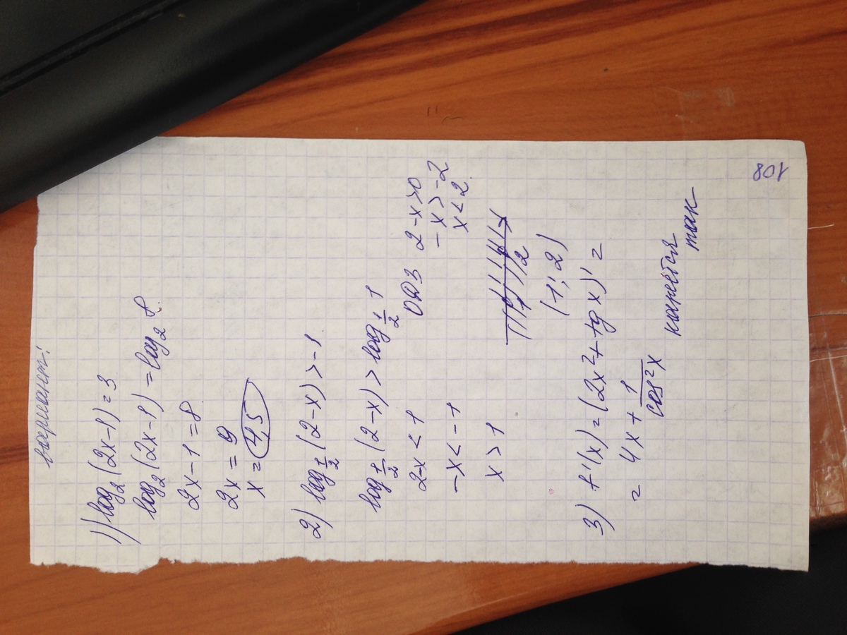 1) Log2(2x-1)=3 ( Решите уравнение)