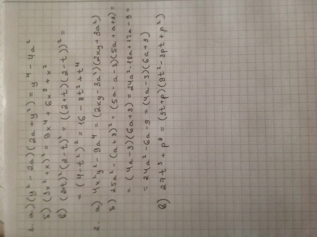 5. Выполните действия: а) (у2 - 2а) (2а + у2); б) (3х2 + х)2; в) (2 + т)2 (2 - т)2.