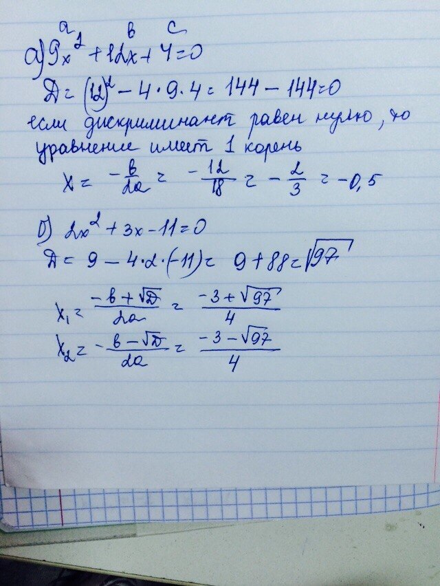 Решите уравнения пожалуйста: а)9 х в квадрате + 12х+4=0