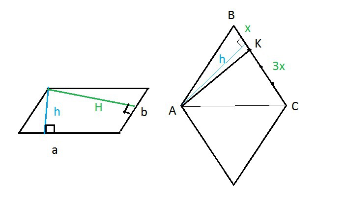 2 В ромбе ABCD на стороне bc отмечена точка K , такая что КС:BK - 3:1 . найдите площадь треугольника ABK,если площадь ромба = 48 см в кв