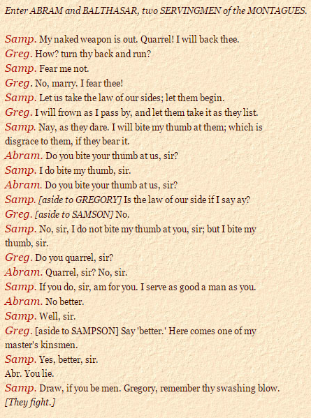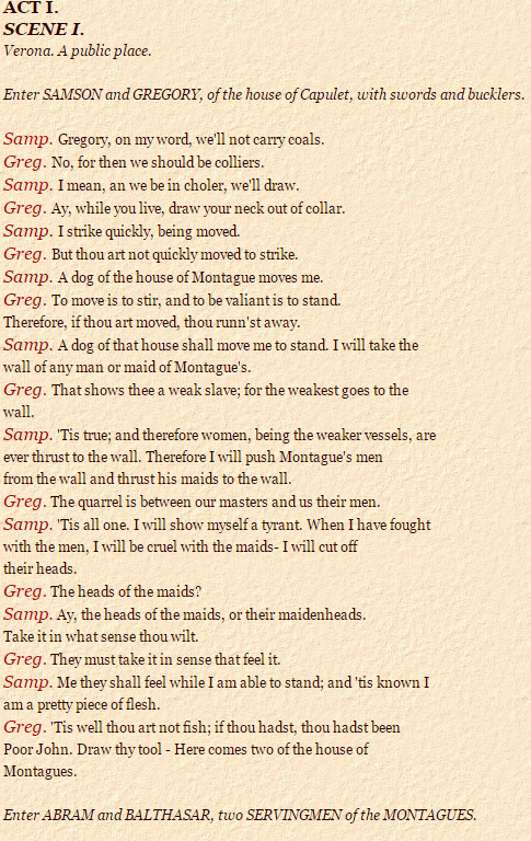Помогите мне нужен сценарий Ромео и Джульетта на английском языке. Желательно отрывок небольшой.