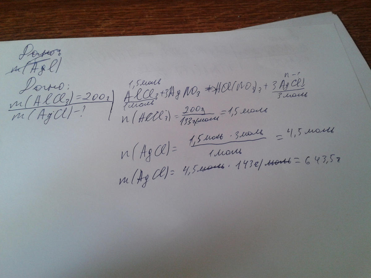 Помогите с задачей пожалуйста. Определите массу осадка который образуется в результате реакции обмена. Раствора нитрата серебра и раствором содержащем 200г. Хлорида алюминия?